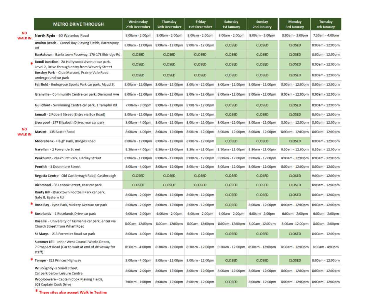 | Lane Cove Library | Closed | Closed | Closed | Closed | Closed |