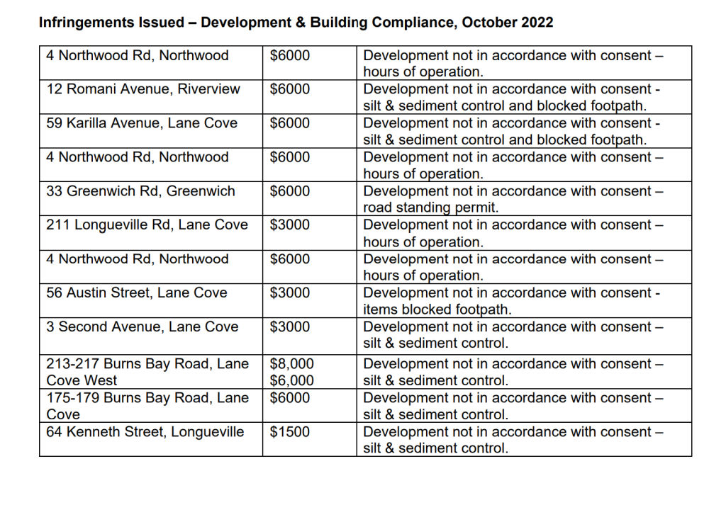 Lane Cove Council publishes a snapshot every month which sets out what has been happening over the month from development applications, parking fines, waste and landfill reduction reports, and reports on upcoming footpath maintenance.