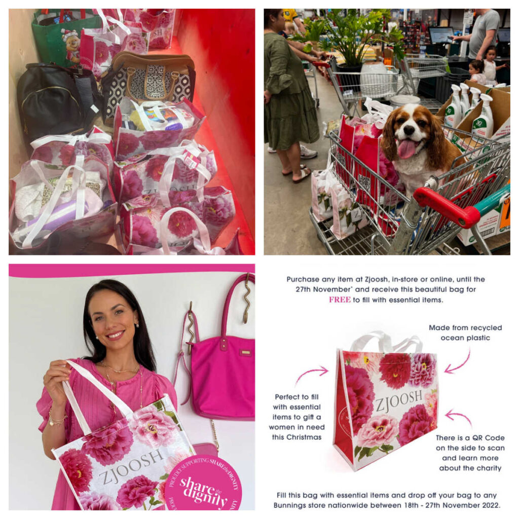 To be involved purchase any item at Zjoosh, in-store or online, until the 27th November* and receive a beautiful peony bag for FREE. Fill the bag with essential items and take your bag to any Bunnings store nationwide between the 18th-27th November 2022 and the amazing volunteer Shereos will pick them up and distribute the bags to over 3000 charities nationwide.