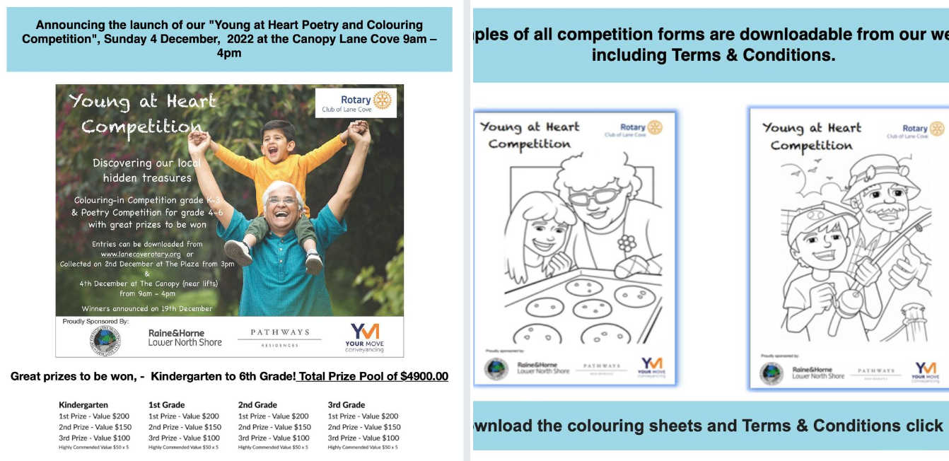 Lane Cove Rotary Club used this opportunity to launch their “Young at Heart Poetry and Colouring Competition”. The competition is about celebrating that special older person in your life.