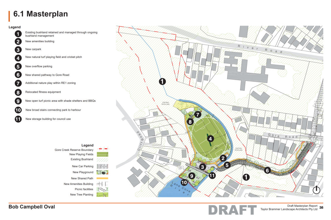 The draft Bob Campbell Oval Masterplan has been released and is an example of Lane Cove Council working with the community to prepare a plan after workshops with stakeholders.