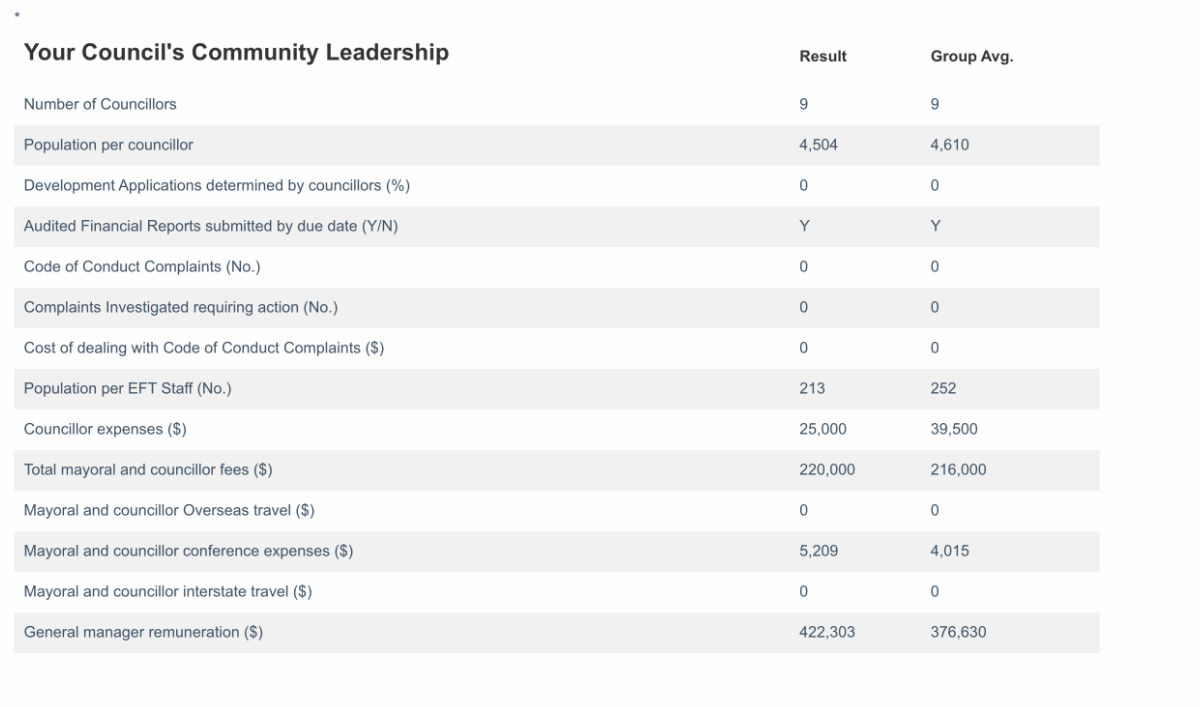 https://www.yourcouncil.nsw.gov.au/council-data/lane-cove/2020/ Note Office of Local Government has not updated since Fin year 20/21. The 21/22 Lane Cove Council Annual Report stated the total amount payable in respect of the employment of senior staff, including salary, superannuation, fringe benefits and all other on-costs was $1,422,308 which includes $443,418 payable to the General Manager. In June 2022 it was resolved that Councillors’ fees for 2022/2023 financial years would be Councillors – $21,100 and the Mayor an additional $46,010 - A full schedule of the user fees and charges proposed for the year is included in the Draft Revenue Policy. The proposed fees have been set in accordance with the Council’s pricing policy, which requires consideration of a number of factors, including community service obligations, the cost of service provision, whether the goods or services are provided on a commercial basis, and the capacity of the user to pay. [ITC note: this is fees and charges that residents pay for items like hiring council facilities to how much you pay for a skip bin on your verge]