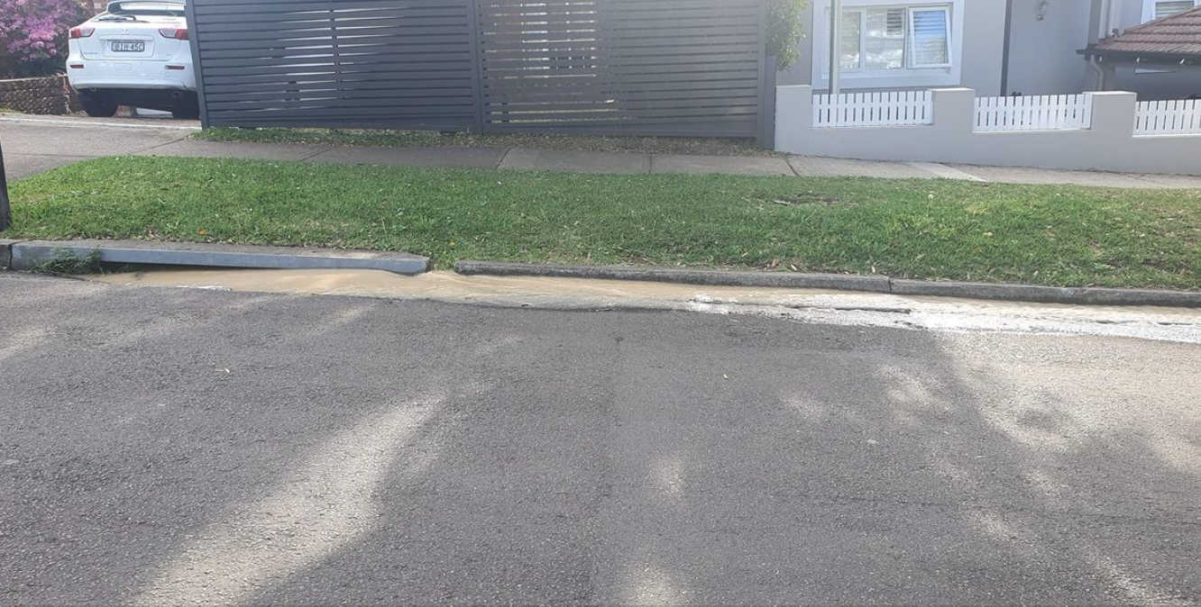 A burst water main in Cullen Street on Friday Night resulted in water gushing down the street. Sydney Water was soon on the scene and fixed the issue without turning off the water supply.