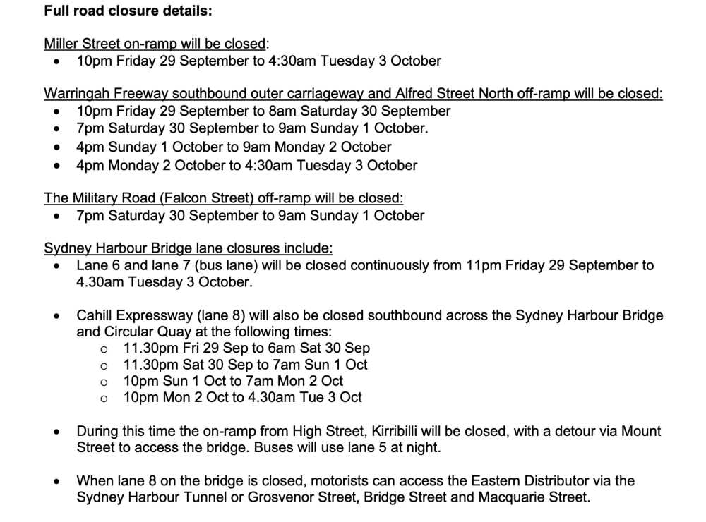 Sydney Traffic and Train Impacts over the October Long Weekend