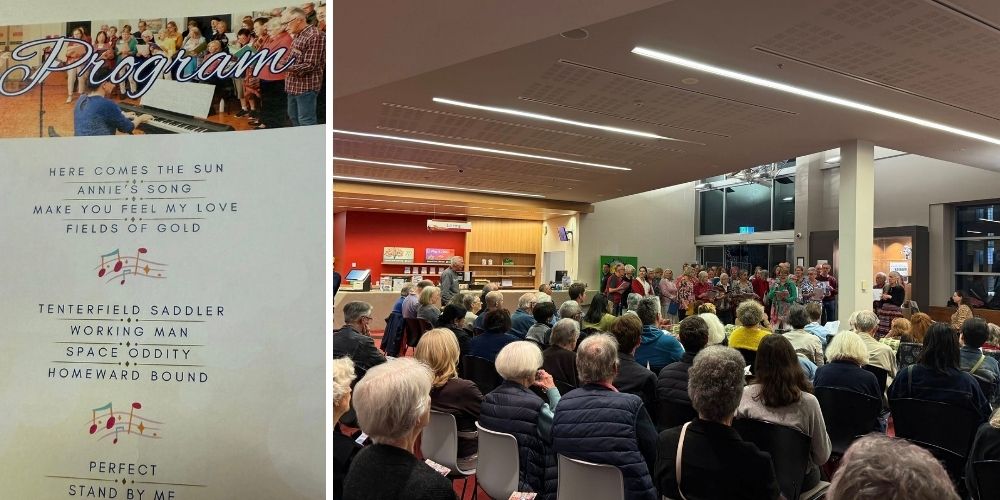 La Voce Community Choir was in fine voice at a packed concert at The Lane Cove Library on Thursday, 18th September. The event was part of the Lane Cove Festival and featured the choir entertaining the crowd with songs by Peter Allen, David Bowie, and John Lennon.