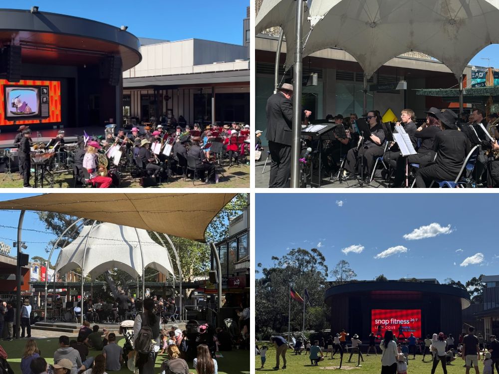 Over in the plaza, locals were treated to performances from Karingal Concert Band and Stringybark Jazz .