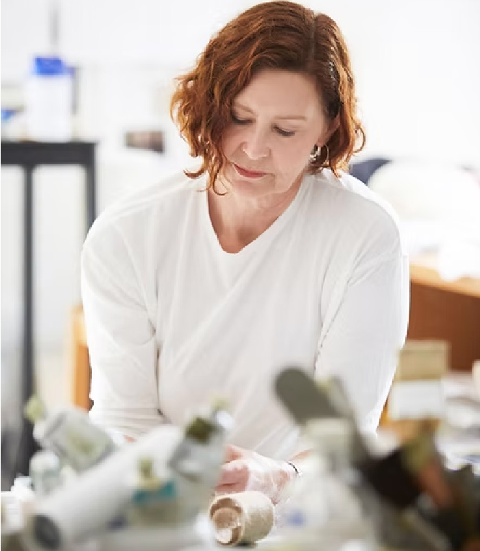 For the past five years, her focus has been on art-making, research, and exhibition. She has won art awards and residencies nationally and internationally for her hand-painted tile, sculptural and watercolour artworks. She was selected to exhibit in the Hazelhurst Art on Paper Award in Gymea, Glamfest Residency and Laneway Festival in Broken Hill, NSW, Hidden at Rookwood, and Eden Unearthed North Ryde. Most recently, Kathie exhibited at SWELL Sculpture Festival, Currumbin Beach.