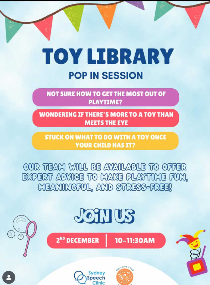 Pop in Session Meet and Greet an OT or Speeh Therapist at The Lane Cove Toy Library