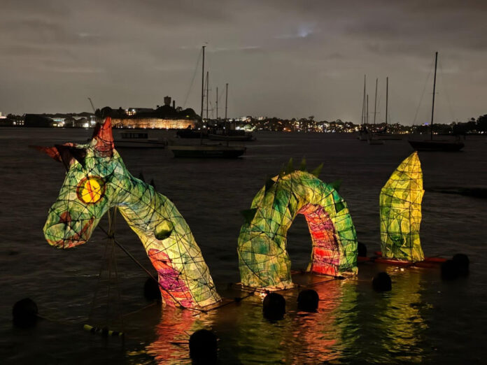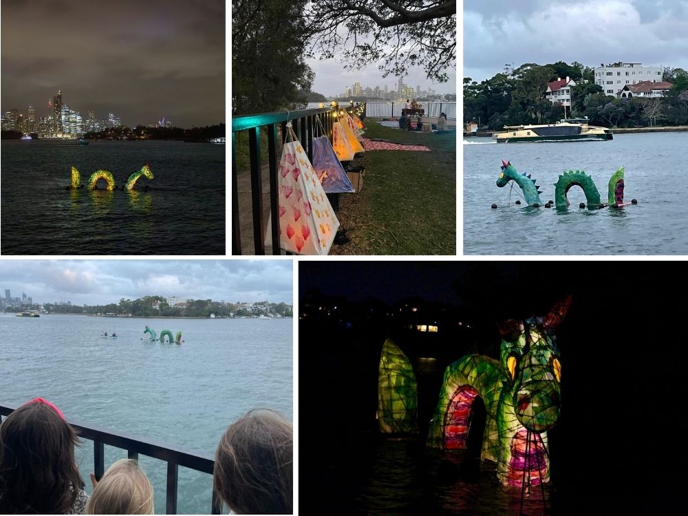On Friday, 14th November, Currambena Primary School and Preschool’s Lantern Loch Ness monster returned to the water as part of the 2025 Festival By The River. Her previous outing was at Tambourine Bay in June. This time she explored the more open waters at Manns Point Greenwich.