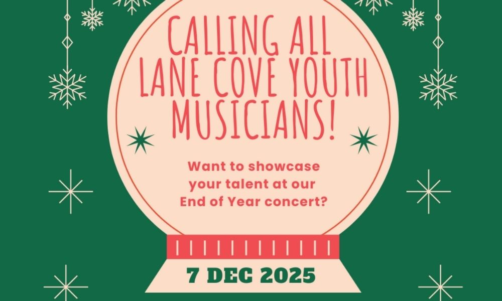Calling all young Lane Cove musicians! This end-of-year community concert invites primary and high-school students to share their talent in a friendly, supportive environment. Performers can choose from a 3:00pm or 4:00pm slot, with family and friends encouraged to come along and enjoy an afternoon of music.