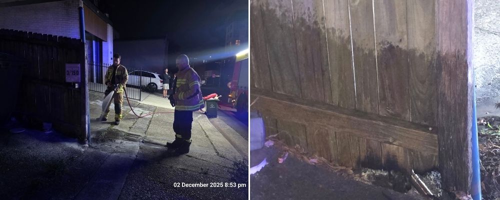 “Called Fire Services this evening – we discovered a small fire (around 30 cm) burning through the neighboring wooden fence at Pottery Lane Lane Cove. Firemen told us it appeared deliberate and to call police if you see anything suspicious.”