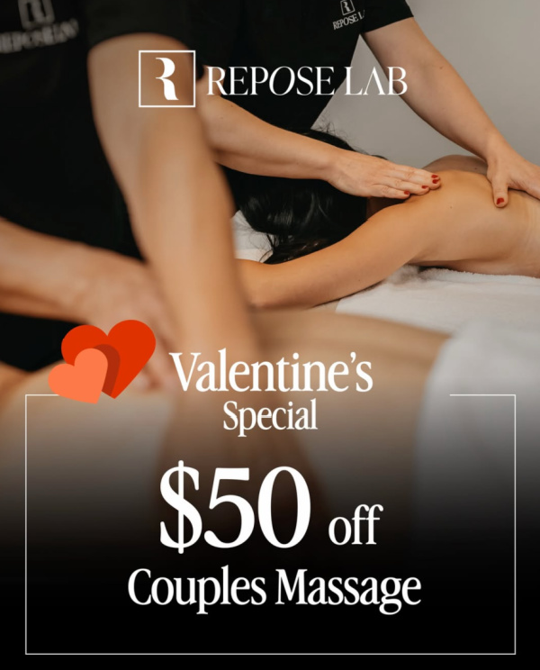Repose Lab has just opened in Lane Cove and features a beautiful, purpose-built massage room for couples. The ideal way to relax and recharge this Valentine’s Day.