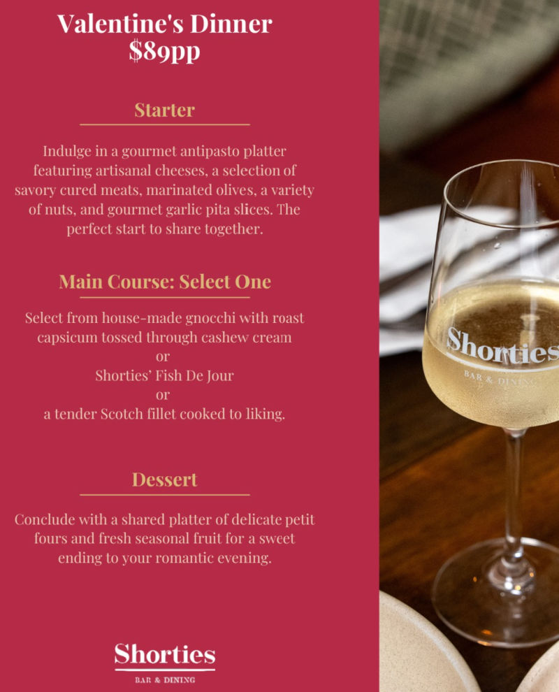 Choose our Valentine’s set menu or order from our regular menu — either way, treat that special someone at Shorties.