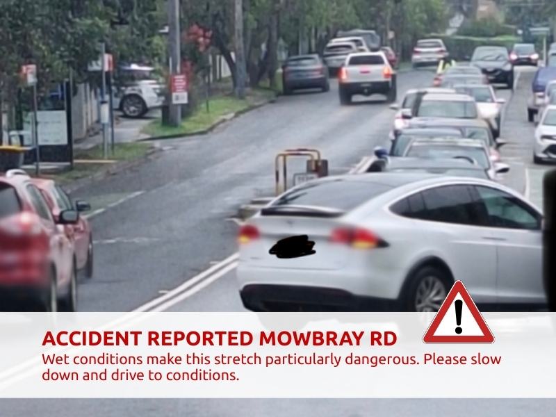 Mowbray Rd is unfortunately known for incidents in wet conditions and Monday’s weather likely made stopping and steering more difficult.