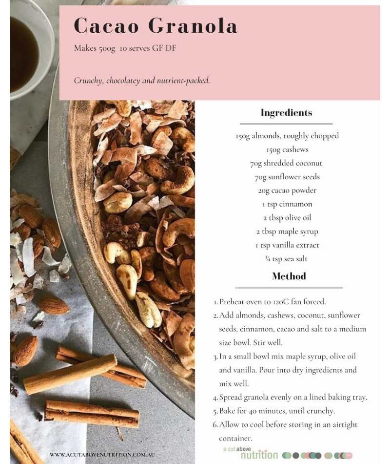 I enjoy my granola with full-fat yoghurt and berries. One serve contains approximately 12g of protein. I add one scoop of collagen powder to add an extra 10g of protein. This ensures a balance of protein, carbohydrate and healthy fat to keep me fuller for longer and energised throughout the morning.