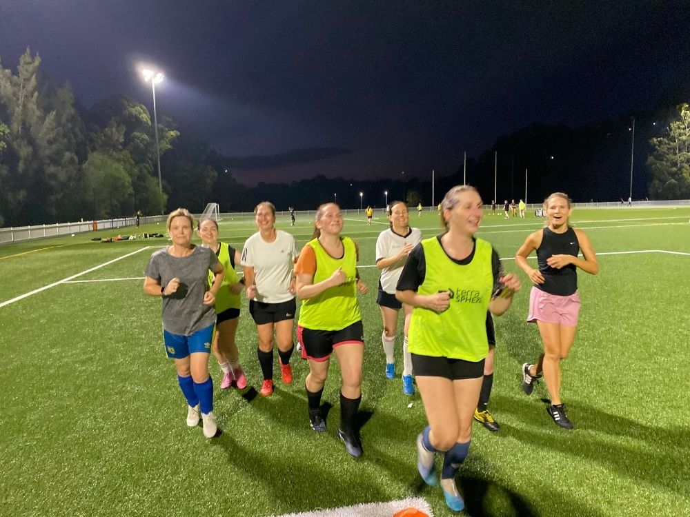 A group of Lane Cove Football Club players are adding an extra challenge to their preseason training as they take part in Mob on the Move.