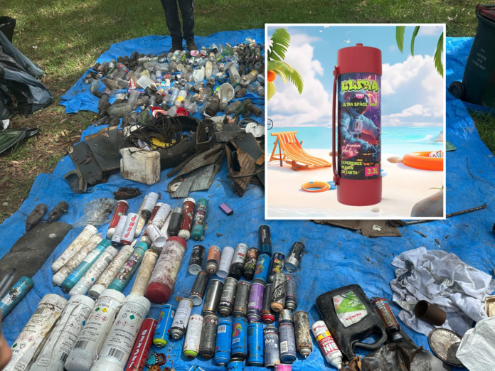 The issue caught the attention of ITC after the Stringybark Creek Residents Association discovered 20 large 3.3L canisters of nitrous oxide and six small canisters on Clean Up Australia Day at Batten Reserve, Lane Cove North.
