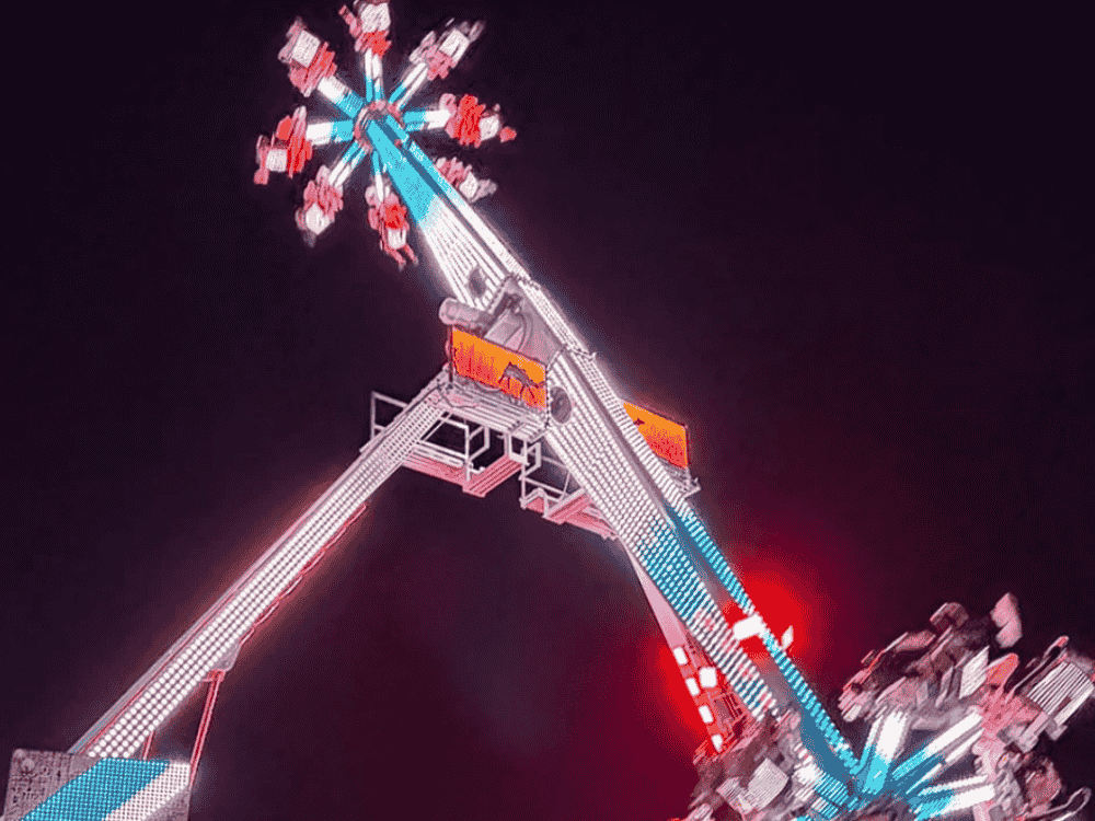 Get ready to chase the sky! This towering ride swings 25 metres high and spins in a wild triple twist through a full 360 degrees.