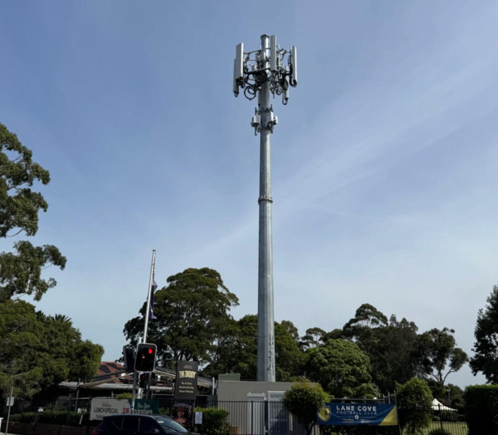 This is the case of the revolving tower. A tower used to be at 4 Northwood Road, it then moved to 266 Longueville Road and then to next to Jack and Co on Northwood Road. The block next to Jack and Co is being redeveloped into a car wash, so the tower had to be removed. This is a temporary tower while Telstra, Optus and Vodafone find a new space, which they envisage will be by Feb 2027.