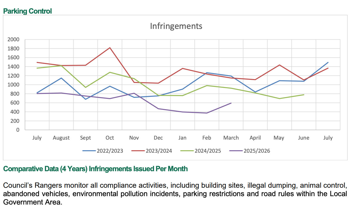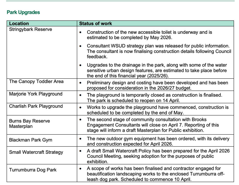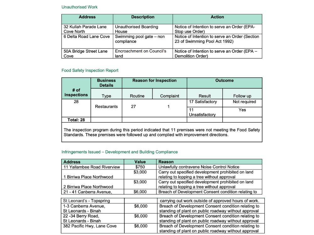 Lane Cove Council publishes a monthly snapshot, which sets out what has been happening over the month, from development applications, parking fines, waste and landfill reduction reports, and reports on upcoming footpath maintenance.