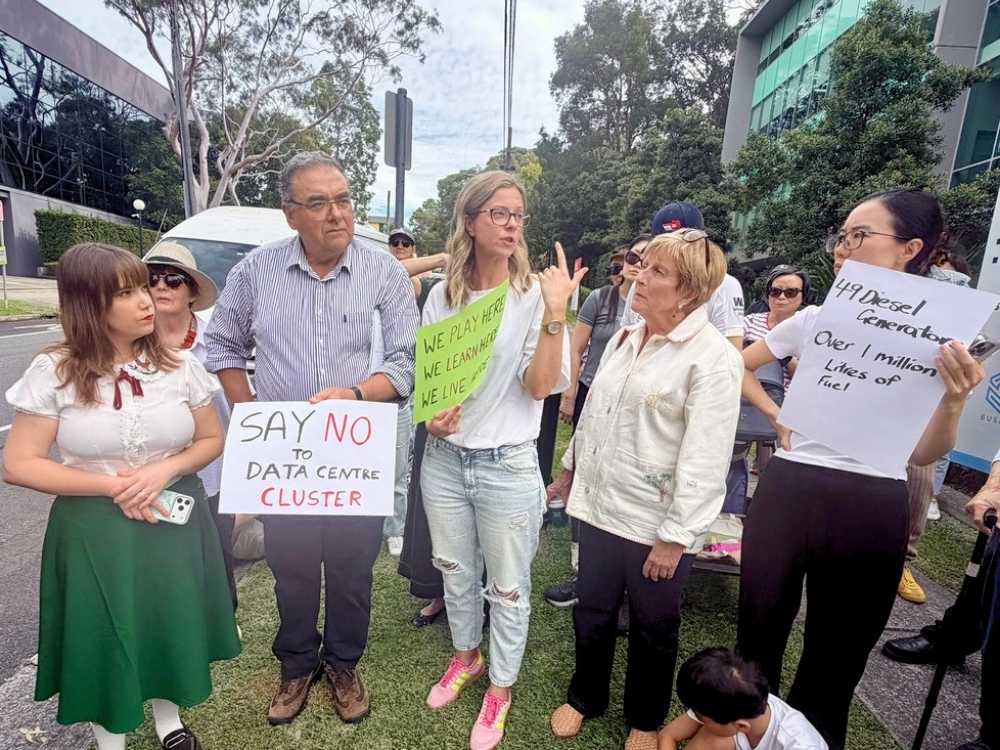 Last Friday, residents gathered at 12 Mars Road, Lane Cove West with Mayor Councillor Merri Southwood, Councillor Rochelle Flood, and NSW Greens MLC Abigail Boyd to voice concerns about Goodman’s proposed “Project Mars” data centre.