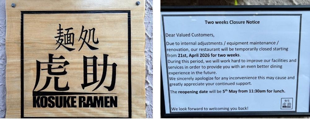 Kosuke Ramen remains closed for renovations this week. This small restaurant is tucked below Via Napoli and offers very delicious ramen and other Japanese favourites.